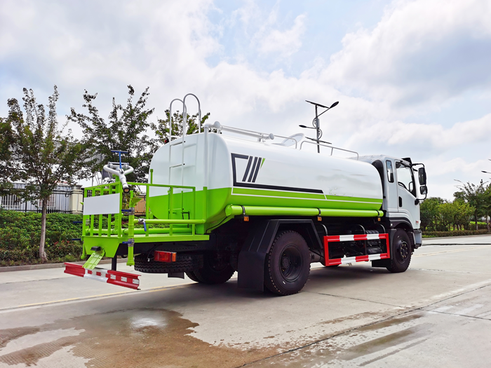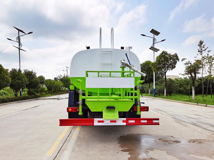 改裝配置:罐體用4MM碳鋼板制作,罐內(nèi)隔板具有防波作用,以減低汽車行駛時(shí)罐體液體的沖擊。整車帶一個(gè)專用灑水泵(垂直最大吸程6米),灑水寬度14米,射程28米。多功能灑水車配備2個(gè)前沖(噴)(能將路面泥巴、塵土、垃圾沖干凈);2個(gè)后灑(能均勻地將水灑在路面,一次灑水寬度14米)、2個(gè)側(cè)噴(花灑)(能均勻地將路旁綠化帶澆灌)、帶1個(gè)后工作平臺(tái),平臺(tái)上安裝1個(gè)綠化灑水高炮(灑水炮可全方位旋轉(zhuǎn),可連續(xù)調(diào)成直沖狀、大雨、小雨、毛毛雨,霧狀可調(diào)節(jié)沖洗高大樹木),引水時(shí)間<5min,流量90m3/h。帶1個(gè)消防接頭,帶1個(gè)自流閥,1個(gè)過濾裝置、人性化爬梯及側(cè)防護(hù)欄,安裝灑水音樂喇叭。